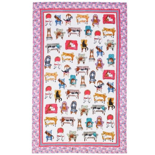 Ulster weavers lounge cat linen tea towel that depicts cats doing what they do best . lounging on the couch, chair or anything that they can lay in. 100-Percent linen tea towel. Machine washable. Size: 29.13-inch x 18.90-inch Read more customer reviews ...