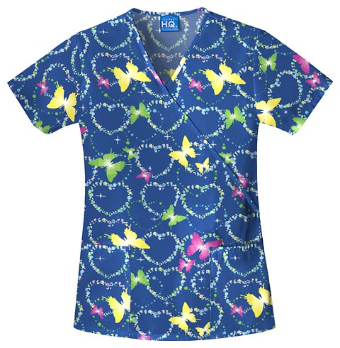 Here are some of the great features of Cherokee HQ Uniforms Butterfly Enchantment Mock Wrap Scrub Top Large